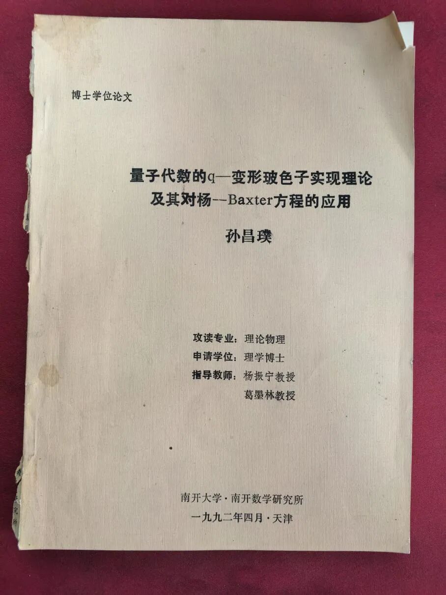 20世纪90年代,孙昌璞来到美国纽约州立大学石溪分校,在杨振宁指导下开展博士后研究。杨振宁一生只收过寥寥几名学生,他作为指导老师署名的博士生论文,大概不会超过10篇,其中一篇就是孙昌璞的。