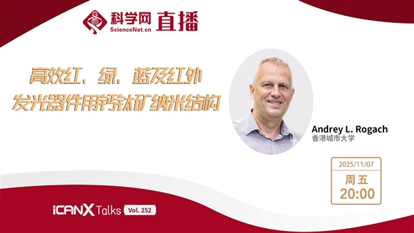iCANX Talks第252期即将于北京时间2025年11月7日晚8点精彩呈现!本期汇聚国际顶尖学者,由香港城市大学Andrey Rogach教授带来主题演讲,澳大利亚科廷大学Guohua Jia教授、苏州大学He Huang教授、北京大学Haixia Zhang教授担任研讨嘉宾,加州大学洛杉矶分校Paul Weiss教授作为主持人。