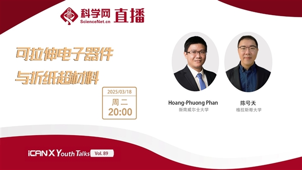 北京时间3月18日晚八点,iCANX Youth Talks第89期将震撼开播!本期我们邀请到了新南威尔士大学教授Hoang-Phuong Phan、格拉斯哥大学助理教授陈号天担任主讲,河南工业大学教授关炎芳、北京大学教授张海霞担任研讨嘉宾,香港城市大学助理教授宋宇担任主持人,期待你一起加入这场知识盛宴。