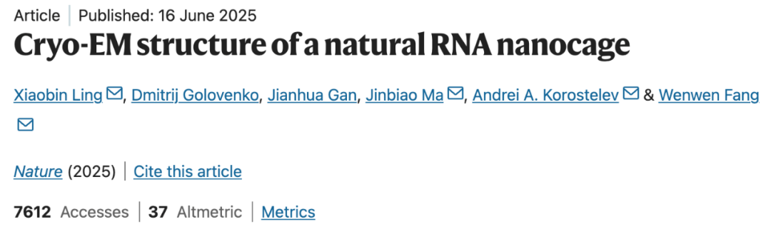 今年6月,就是这位美国麻省大学陈氏医学院博士后腾飞之际。作为一作兼共同通讯作者,凌小滨主持的天然RNA纳米笼结构研究以article的形式快速在线发表于《自然》杂志。