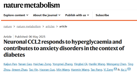 今年5月,凝聚了师生五年心血的研究在Nature Metabolism上线,为糖尿病患者常见的情绪障碍找到了明确的生物学机制,也为探索更广泛的糖尿病神经并发症机制提供了新的视角。