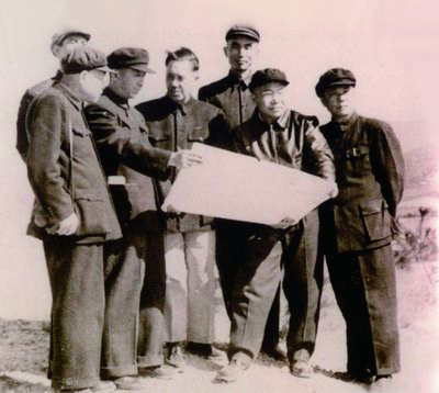 1956年11月,陈焕镛(中)、张肇骞(右一)、陈封怀(左一)等在现场规划华南植物园建园工作