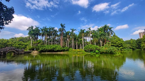 前辈们用汗水浇铸的龙洞琪林,由棕榈园与孑遗植物区两个半岛以及人工湖巧妙组合而成,以其独特的魅力吸引着络绎不绝的游客。一侧是四季常青的棕榈植物,椰风葵影中尽显热带风情;另一侧则是四季更迭的落羽杉与依水而立的水松,恍若童话中的森林。