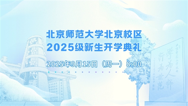 9月15日上午8时,北京师范大学将举办2025级新生开学典礼,并在线上同步直播。让我们相约师大,与优秀的同学们一起,聆听师长的殷殷期盼与美好寄语,迎接我们人生的新起点!