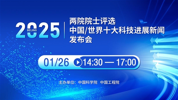 “两院院士评选2025年中国/世界十大科技进展新闻”发布会于2026年1月26日在北京举行。此次发布会由中国科学院、中国工程院主办。“两院院士评选中国/世界十大科技进展新闻”活动是科技领域历史最悠久的科普评选活动之一。该活动旨在向公众传播国内外科技发展动态,普及科学技术。评选结果经新闻媒体广泛报道传播后,在社会上产生了强烈反响,使公众进一步了解年度国内外科技发展的动态,对宣传、普及科学技术起到了积极作用。