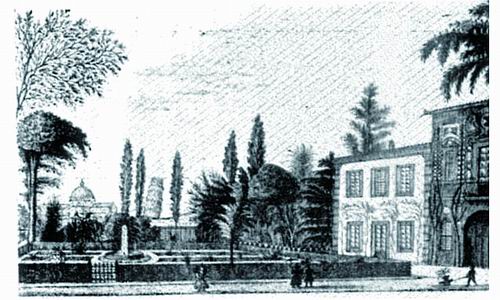 ▲19世纪初比萨植物园视图,展现圣玛丽亚街古老入口(位于自然历史博物馆下方),科西莫·隆巴多教授1940年捐赠(比萨植物研究所藏)。作者供图