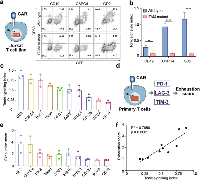 据介绍,嵌合抗原受体(CAR)的基底信号(Tonic signaling),即在没有肿瘤抗原刺激的情况下自发激活CAR,被认为是控制CAR-T疗效的关键事件。然而,自发CAR信号的分子机制仍不清楚。