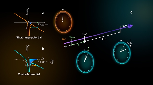 近日,吉林大学丁大军、王春成研究团队与海南大学杨玮枫、宋晓红团队合作,利用能量分辨角条纹测量,结合包含势垒下库仑相互作用的改进库仑修正强场近似(Improved Coulomb-corrected strong-field approximation, ICCSFA)方法,发现量子隧穿中的库仑相互作用和经典连续态库仑聚焦效应共同决定阿秒角条纹的测量结果,从而导致了电子偏转角与隧穿电离时刻的一一对应关系的失效。