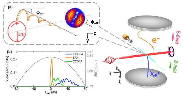 光诱导超快电子动力学影响着众多自然过程,其观测与操控对理解微观世界至关重要。阿秒光计量技术,如阿秒条纹技术、阿秒光电子干涉技术和阿秒角条纹技术等,使人类可以在原子时空尺度上探测电子动力学特性,这些技术为实现阿秒化学的量子控制和拍赫兹超快光电信号处理等提供了可能的途径。阿秒角条纹方法主要利用椭圆偏振激光强场电离,将电子隧穿可能存在的延迟时间映射到光电子最大产率对应的偏转角,实现阿秒精度测量。然而,其关键假设——电子偏转角与隧穿电离时刻的一一对应关系,仍需进一步验证。