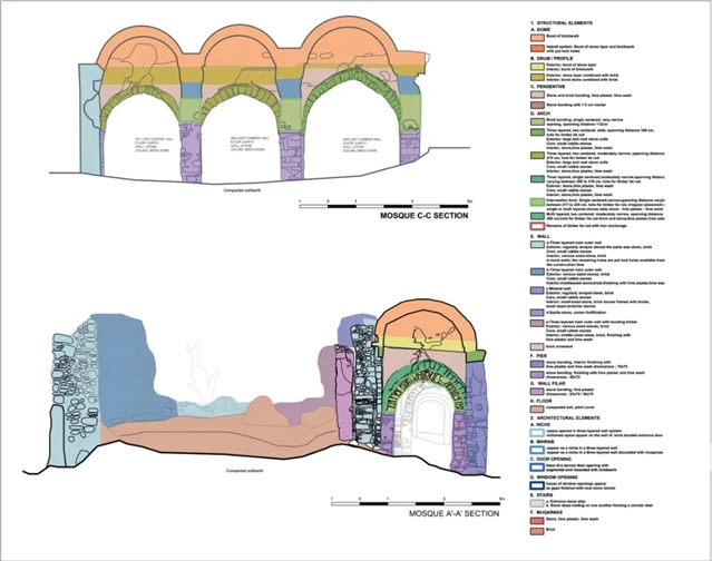 ▲ 图三:An example of construction technique and material usage analysis on the mosque’s sections。© 本文作者