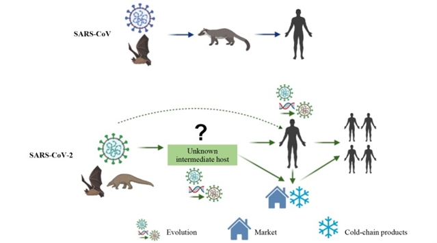 图2 SARS冠状病毒与SARS-CoV-2的可能传播链