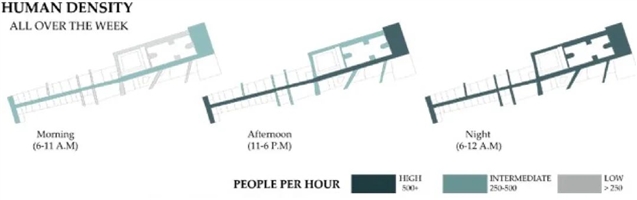 ▲ 图四:易读性分析:(a) 闲置空间;(b) 步行强度。©本文作者