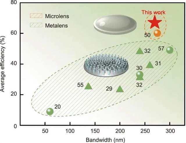 色差是光学成像中的一个重要问题,它会导致成像模糊和色彩失真。传统光学系统中,通常需要使用多个透镜组合来校正色差,这使得光学系统体积庞大且复杂。近年来,随着光学超表面技术的发展,超透镜为解决这一问题提供了新的思路。然而,超透镜的制造工艺复杂,且聚焦效率较低。为了克服这些限制,研究人员提出了一种基于低色散材料和精心设计的弧面及厚度分布的消色差微透镜设计方法。