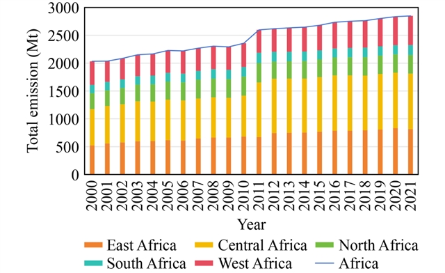 图2 2000–2021年非洲不同地区农业食品系统碳排放总量。