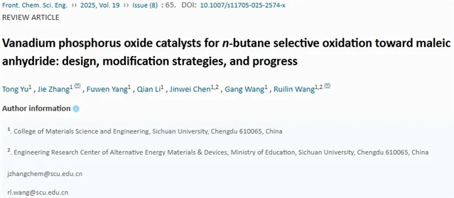 FCSE | 综述:用于正丁烷选择性氧化制备马来酸酐的钒磷氧化物催化剂——设计、改性策略及研究进展 |