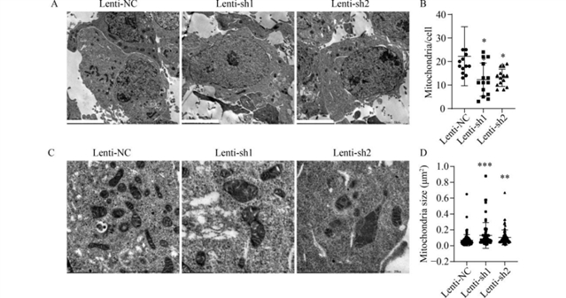 图4 TRMT2B干扰的HEK293细胞系中的线粒体形态改变