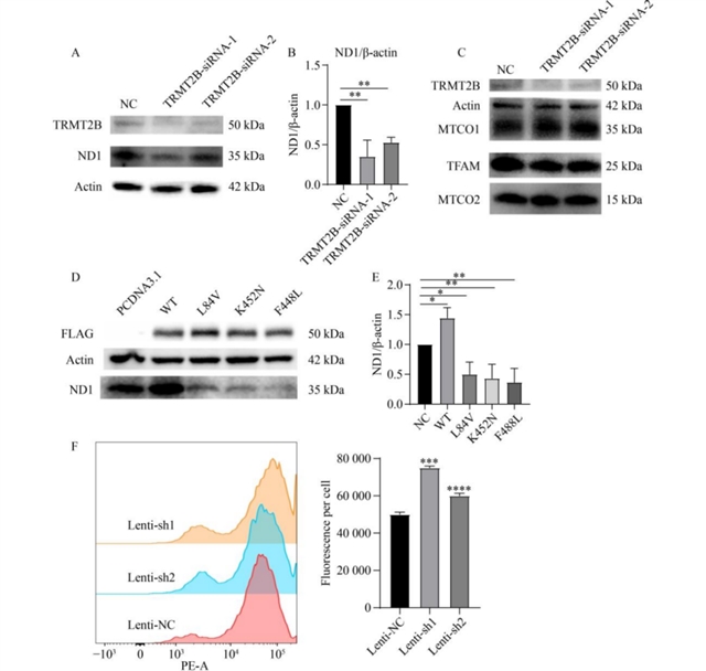 图5 TRMT2B干扰的HEK293细胞系中的线粒体功能改变