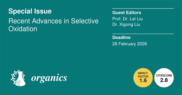 《Organics》期刊特邀山东大学化学与化工学院的刘磊教授及刘希功副研究员共同推出特刊Recent Advances in Selective Oxidation(选择性氧化的最新进展)。我们诚挚邀请广大研究人员围绕“选择性氧化”这一主题,踊跃投递具有新颖性与开创性的研究成果,共同推动该领域向前发展。