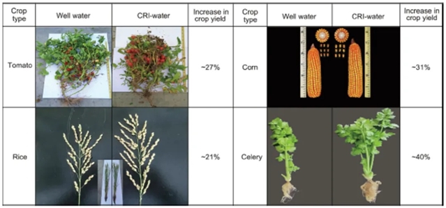 图2 不同灌溉技术(井水和CO2水肥)对作物产量的影响对比
