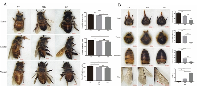 结论1 :随年龄增长,东方蜜蜂工蜂形态出现显著退化