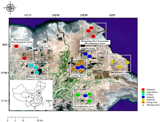 了解油田区域多环芳烃(PAC)的空间分布、来源及其在气—土交换过程中的分布状况,对于制定有效的PAC污染控制措施至关重要。本研究于2018-2019年在胜利油田所在的黄河三角(YRD)地区采集了48个被动空气样品和24个土壤样品,共计7个功能区(分别为城区、油田区、城郊区、工业区、农业区、泵站附近区和背景区),并对所有空气和土壤样品中的18种母体多环芳烃 (PAH) 和5种烷基化多环芳烃(APAH)进行了分析。大气和土壤中PAHs的含量分别为2.26至135.83 ng/m3和33.96至408.94 ng/g,APAHs的含量分别为0.04至16.31 ng/m3和6.39至211.86 ng/g。大气PAHs浓度随着距城区距离的增加呈下降趋势,土壤中PAH和APAH浓度均随着距油田区距离的增加而降低。PMF分析表明,对于大气中的PACs,在城区、城郊和农业区,煤/生物质燃烧是主要贡献源。而在工业区和油田区,原油生产和加工源的贡献较大。对于土壤中的多环芳烃(PAC),人口密集区域(工业区、城区和郊区)受交通源的影响较大,而油田和泵站附近区域则受石油泄漏的影响较大。逸度分数(ff)结果表明,土壤普遍排放低分子量多环芳烃(PAH)和对羟基苯甲酸(APAH),并吸收高分子量多环芳烃(PAH)。空气和土壤中(PAH+APAH)的终生增量致癌风险(ILCR)均低于美国环保署设定的阈值(≤10−6)。