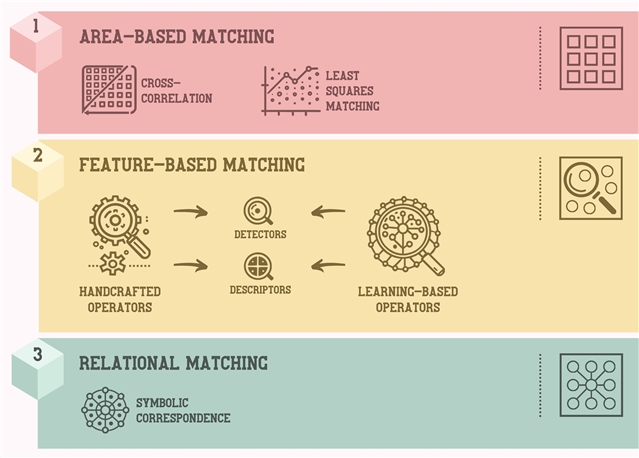 本条目全面概述了图像匹配中使用的方法。首先介绍基于区域的匹配,概述确定匹配关系的成熟技术。然后,本文介绍了基于特征的图像匹配的概念,涵盖特征点检测和描述问题,包括手动和基于学习的算子。本文简要介绍了常用的检测器和描述符,然后介绍了描述符匹配和异常值剔除技术。最后,本文简要概述了关系匹配。