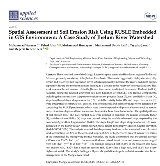 本研究利用修正通用土壤流失方程 (RUSLE) 对杰赫勒姆河流域的土壤侵蚀风险进行评估,研究的结果将为政策制定者和决策者提供指导。