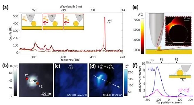 近日,西班牙CIC nanoGUNE-BRTA研究中心Rainer Hillenbrand教授团队基于商业化的散射式-扫描近场光学显微镜(s-SNOM)的探针尖端,结合等离子体纳米腔,实现了非线性和频生成(Sum-Frequency Generation, SFG)的增强和原位动态控制。