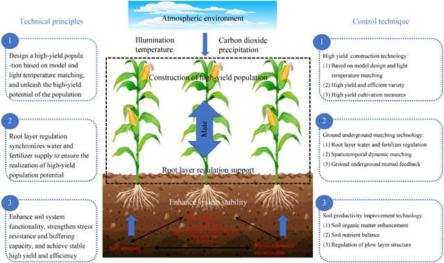 图2 基于土壤-作物系统综合管理的玉米可持续高效增产原理与技术创新。