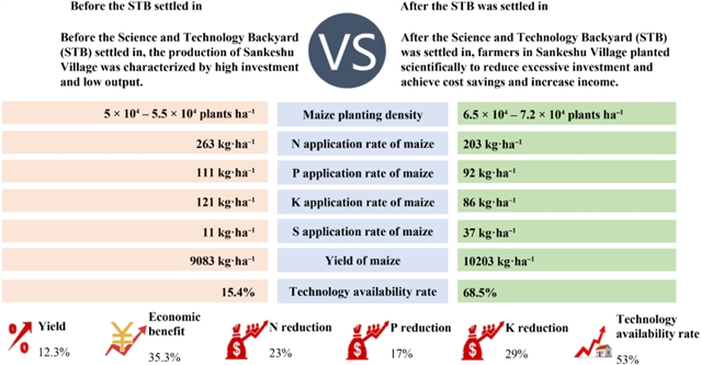 图4 我国东北吉林省梨树县玉米科技小院建立前后的生产状况对比。