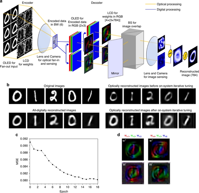 图2. 基于光学神经网络的自动编码器硬件实现与评估