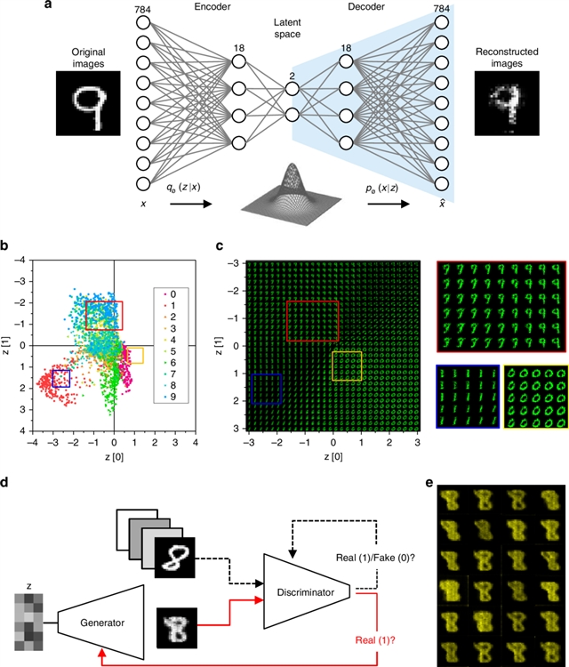 图4. 采用2型乘法器的变分自动编码器与生成对抗网络的实现及结果