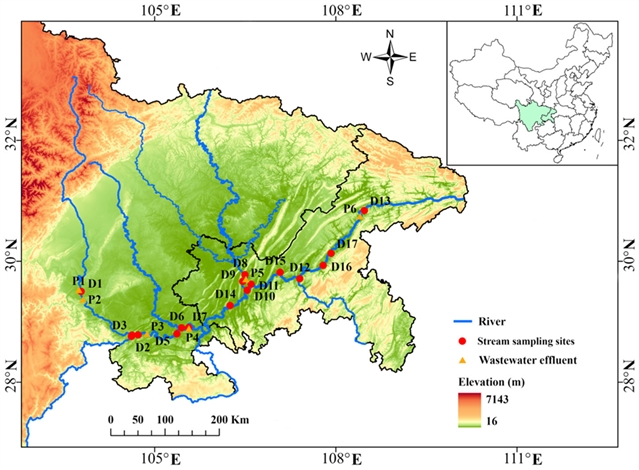 新兴污染物(CECs),包括全氟和多氟烷基化合物(PFASs)和有机磷酸酯阻燃剂(OPFRs),由于其持久性、生物累积潜力和毒性而引起了全球关注。本研究全面调查了中国长江上游地表水中18种PFASs和9种OPFRs的存在、时空分布、潜在来源及其生态和人类健康风险。水样采集于2022年和2023年,取自长江干流和五条主要支流(岷江、金沙江、沱江、嘉陵江和乌江)。PFASs和OPFRs的总浓度分别为16.07至927.19 ng/L和17.36至190.42 ng/L,干流中的浓度始终高于支流。超短链全氟烷基化合物(PFASs)(例如TFMS)和卤代有机阻燃剂(OPFRs)(例如TCPP)是主要化合物,可能源自工业排放、废水排放物和其他人为污染源。生态风险评估表明,大多数采样点的风险为低至中等,废水排放点附近的风险较高。人体健康风险评估表明,非致癌风险可忽略不计,但发现特定地区(尤其是乐山市)成人接触OPFRs存在潜在的致癌风险。本研究强调了了解长江上游PFASs和OPFRs的命运和影响的重要性,并为制定有针对性的污染控制策略和风险管理措施提供了宝贵的参考。