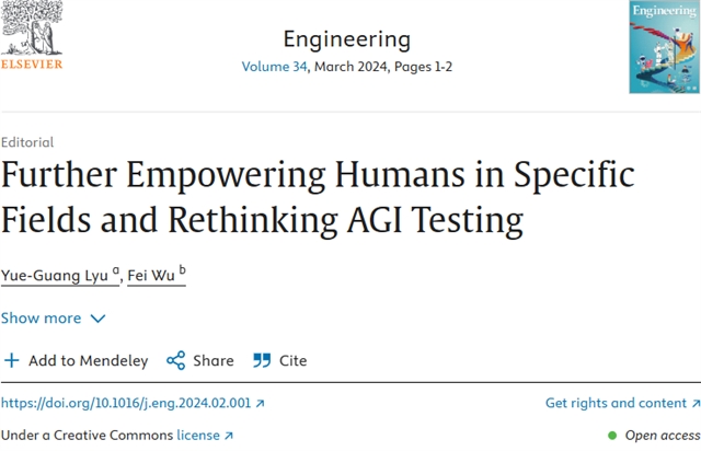 Yue-Guang Lyu, Fei Wu. Further Empowering Humans in Specific Fields and Rethinking AGI Testing. Engineering, 2024, 34(3): 1–2 https://doi.org/10.1016/j.eng.2024.02.001