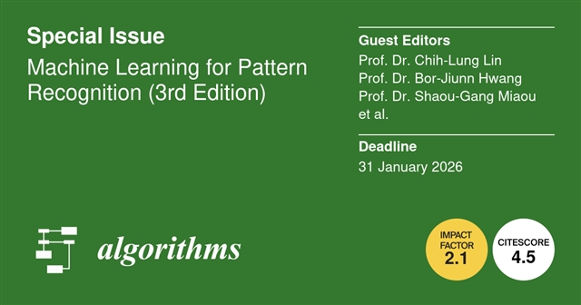Algorithms:《机器学习与模式识别》第三辑 | MDPI 特刊征稿 |
