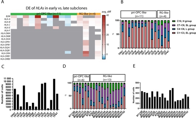 图3 pri-OPC样胶质瘤存在大量人类白细胞抗原低表达的亚克隆群体
