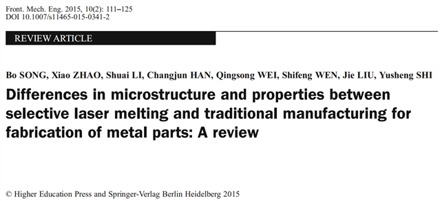 论文标题:Differences in microstructure and properties between selective laser melting and traditional manufacturing for fabrication of metal parts: A review