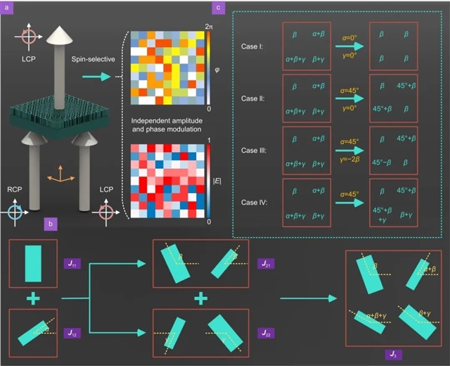天津大学的姚建铨院士团队联合南昌大学的沈云教授团队提出了一种基于琼斯矩阵的多重几何相位机制,可以在太赫兹波段实现自旋相关的复振幅调制,为光电子技术的发展开辟新的方向,同时也为理解光与物质相互作用的复杂机制提供了新的视角。