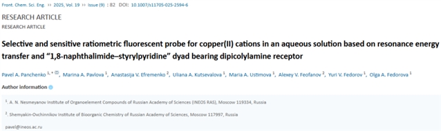 Pavel A. Panchenko, Marina A. Pavlova, Anastasija V. Efremenko, Uliana A. Kutsevalova, Maria A. Ustimova, Alexey V. Feofanov, Yuri V. Fedorov, Olga A. Fedorova. Selective and sensitive ratiometric fluorescent probe for copper(II) cations in an aqueous solution based on resonance energy transfer and “1,8-naphthalimide–styrylpyridine” dyad bearing dipicolylamine receptor. Front. Chem. Sci. Eng., 2025, 19(9): 82 DOI:10.1007/s11705-025-2594-6