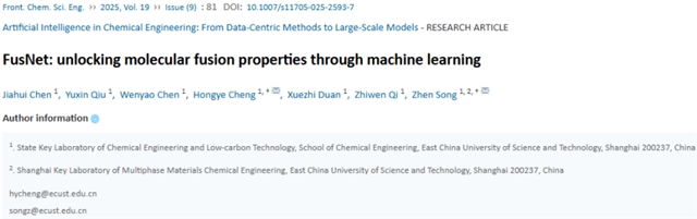 Jiahui Chen, Yuxin Qiu, Wenyao Chen, Hongye Cheng, Xuezhi Duan, Zhiwen Qi, Zhen Song. FusNet: unlocking molecular fusion properties through machine learning. Front. Chem. Sci. Eng., 2025, 19(9): 81 DOI:10.1007/s11705-025-2593-7