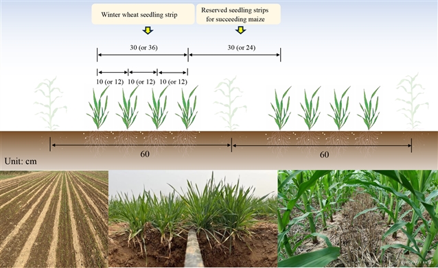农机-农艺-信息三元融合是提升资源效率的关键。冬小麦"四密一疏"条播 (图1) 结合精准播种与滴灌技术,使小麦增产9%–17%、玉米增产12%–14%。但免耕播种质量差、水肥施用时机不当等问题仍待解决。