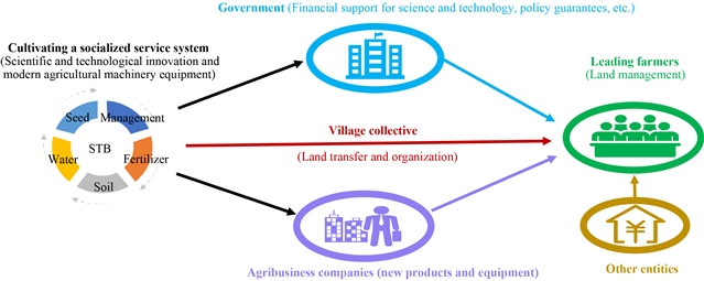 (4) 政策服务支撑:完善农业技术推广和社会化服务体系,通过政策引导与专业培训促进绿色高产技术的广泛应用,实现科技创新与产业需求的有效对接。