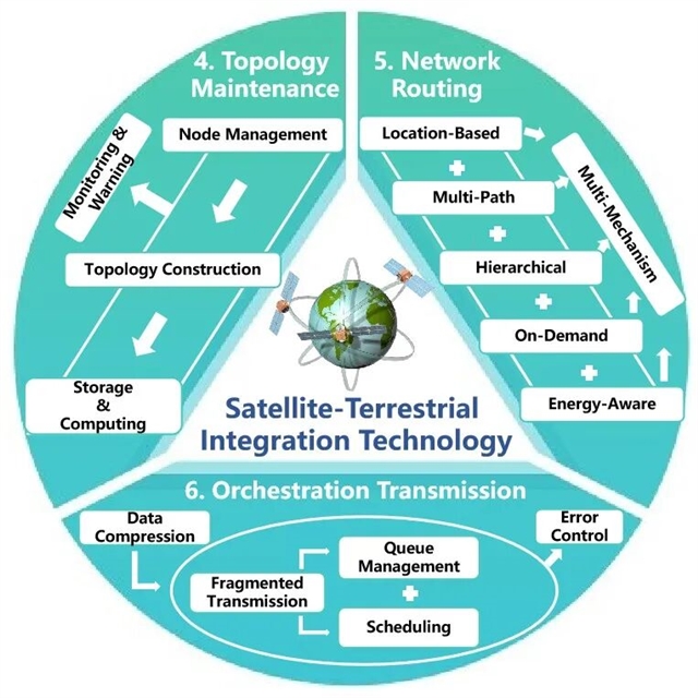 在全球各国加快布局6G移动通信技术、积极抢占未来通信制高点的背景下,星地融合网络技术作为6G关键技术之一,正面临前所未有的发展机遇和技术挑战。在众多6G前沿技术中,星地融合组网因其能够实现全球无缝覆盖、提供泛在连接服务而备受关注。随着卫星通信技术的快速发展和地面网络的不断演进,星地融合网络在6G时代的应用前景日益广阔,并在技术研究和工程实践中取得了重要突破。近期,一项发表于中国工程院院刊《Engineering》的研究从网络层视角对6G星地融合网络技术进行了全面综述。