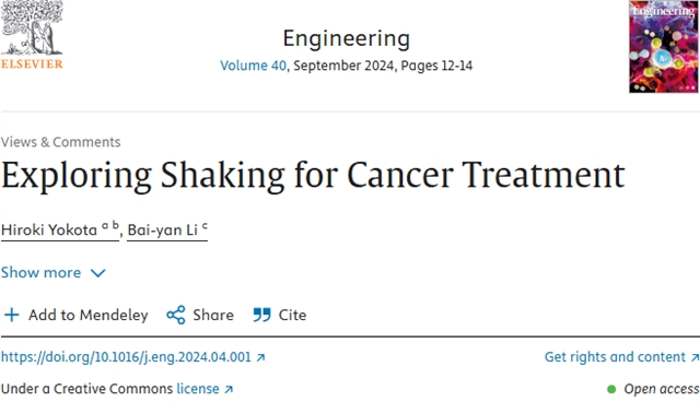 Hiroki Yokota, Bai-yan Li. Exploring Shaking for Cancer Treatment. Engineering, 2024, 40(9): 12–14. DOI: 10.1016/j.eng.2024.04.001