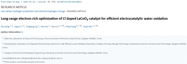 Fei Jiang, Jiaye Li, Yingying Liu, Kun Hu, Yan Lin, Chao Feng, Yuan Pan. Long-range electron-rich optimization of Cl doped LaCoO3 catalyst for efficient electrocatalytic water oxidation. Front. Chem. Sci. Eng., 2025, 19(9): 90 DOI:10.1007/s11705-025-2603-9