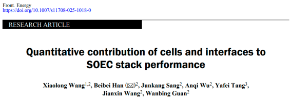 Xiaolong Wang, Beibei Han, Junkang Sang, Anqi Wu, Yafei Tang, Jianxin Wang, Wanbing Guan. Quantitative contribution of cells and interfaces to SOEC stack performance. Front. Energy, https://doi.org/10.1007/s11708-025-1018-0