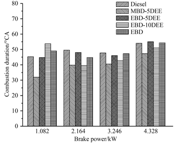 DEE作为添加剂与柴油、生物柴油或多元燃料混合时,可提升发动机的性能: 制动热效率(BTE)显著提高,制动比油耗(BSFC)降低,且燃烧持续期(CD)缩短。排放方面,DEE的高氧含量能够促进完全燃烧,减少一氧化碳(CO)、碳氢化合物(HC)和悬浮微粒(PM)的排放,但氮氧化物(NOx)的排放受燃烧温度影响呈现波动。然而,DEE的低闪点(-41 ℃)和高汽化潜热(356 kJ/kg)可能导致储存安全风险及冷启动时的燃烧不稳定,需通过燃料优化或添加剂缓解。