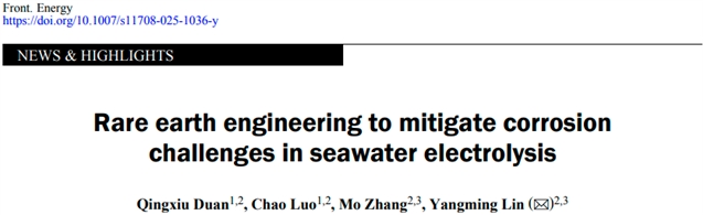 Qingxiu Duan, Chao Luo, Mo Zhang, Yangming Lin. Rare earth engineering to mitigate corrosion challenges in seawater electrolysis. Front. Energy DOI:10.1007/s11708-025-1036-y