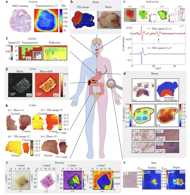 这一方案的思路不再依赖近红外激光与PCA组件,而是尝试通过柔性光纤或波导直接将太赫兹波传输到深部组织,再将反射或散射信号回传检测。与前者相比,它的系统结构更为简洁,在理论上更适合深部组织的实时诊断与术中导航。在乳腺癌和脑胶质瘤的离体研究中,这一路径展现出能够清晰描绘肿瘤边界的能力;在胃癌、结直肠癌和肝癌等组织中,相关实验同样显示出与病理切片高度一致的对比度。但目前高性能太赫兹光纤和波导仍属稀缺资源,传输损耗大、制造成本高,商用化产品尚不成熟,这在一定程度上制约了其临床转化。