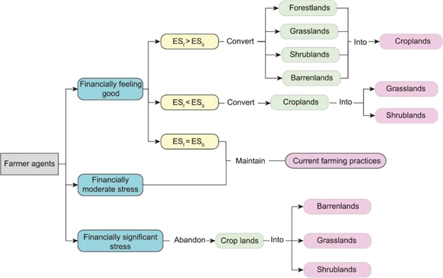 图3 土地利用决策过程与农民经济状况转换图。